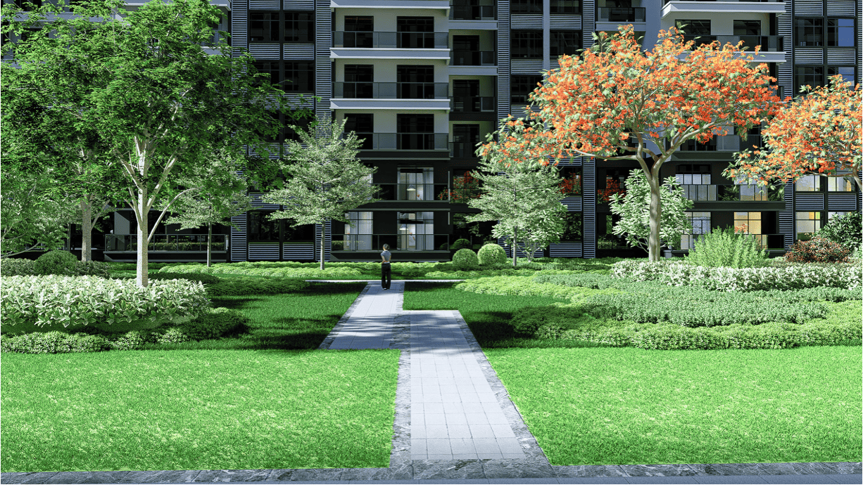 甄选银海枣、小叶榄仁、凤凰木、大腹木棉、紫花风铃、鸡蛋花等特色绿植,超阔楼间距计阳光清风肆意穿行,