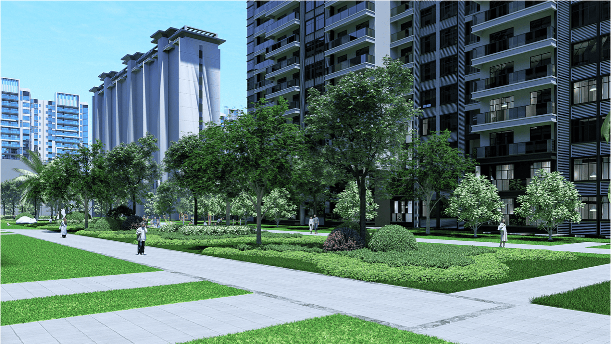 甄选银海枣、小叶榄仁、凤凰木、大腹木棉、紫花风铃、鸡蛋花等特色绿植,超阔楼间距计阳光清风肆意穿行,